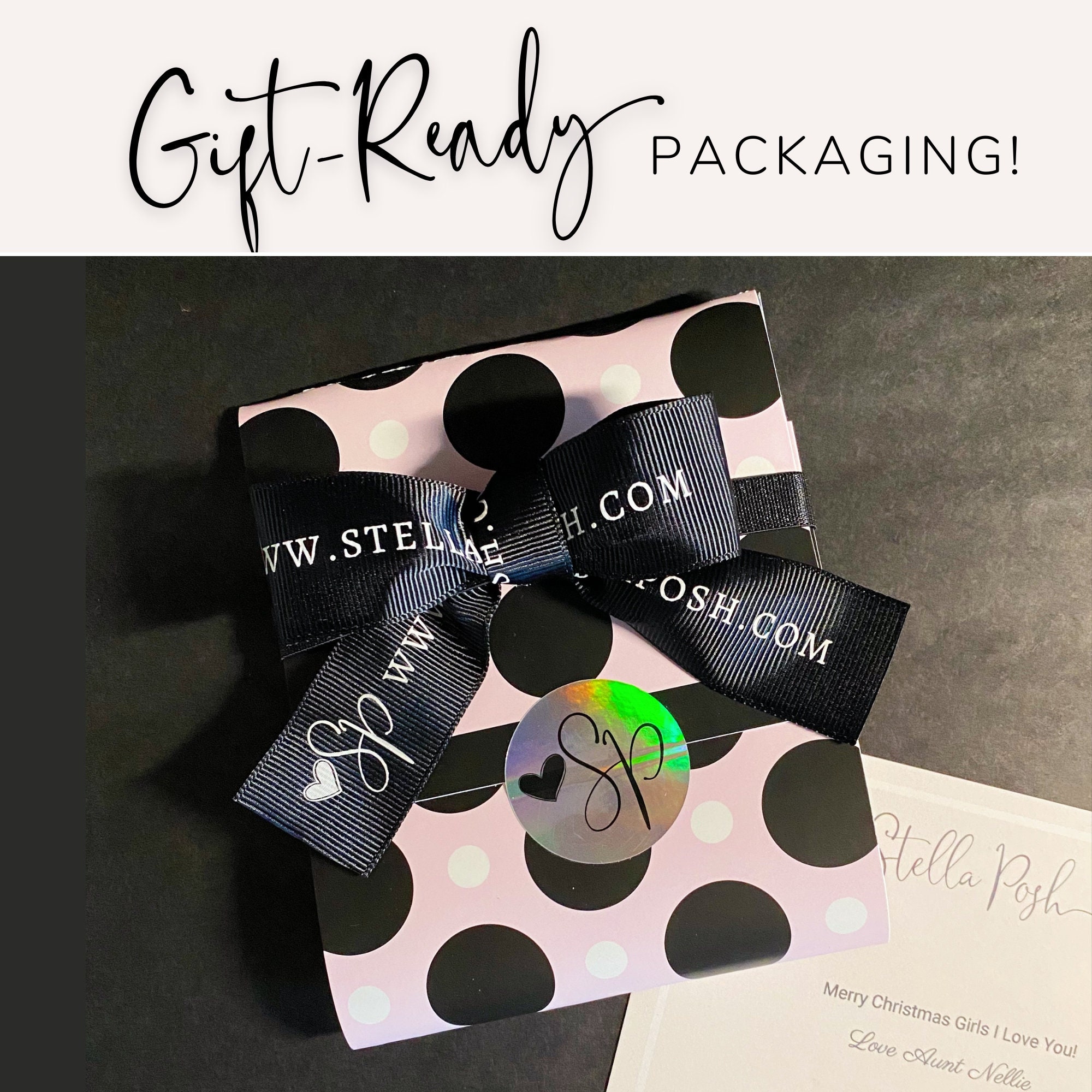 Packaging: Polka-dot envelope with black bow is standard with all orders.