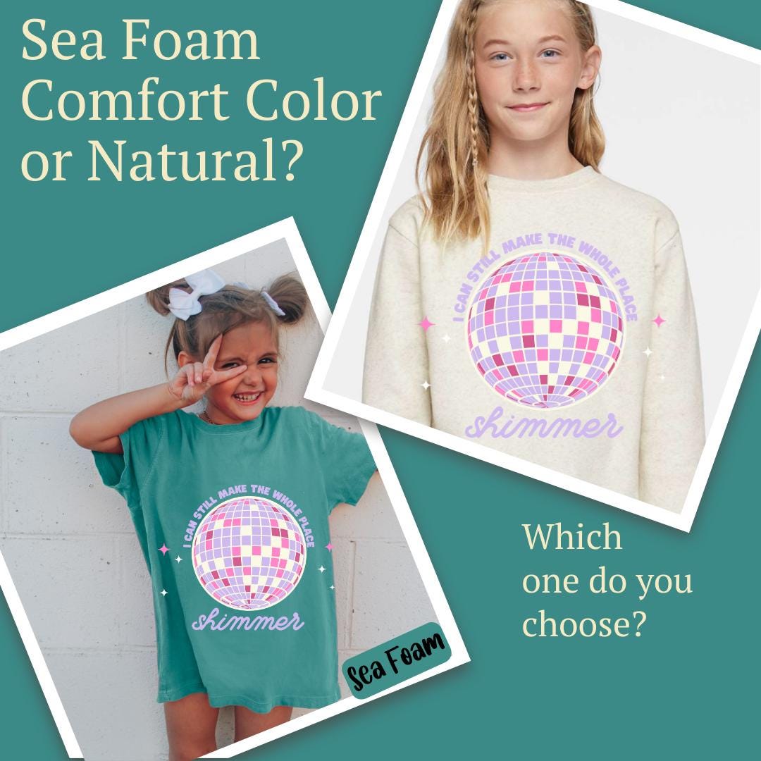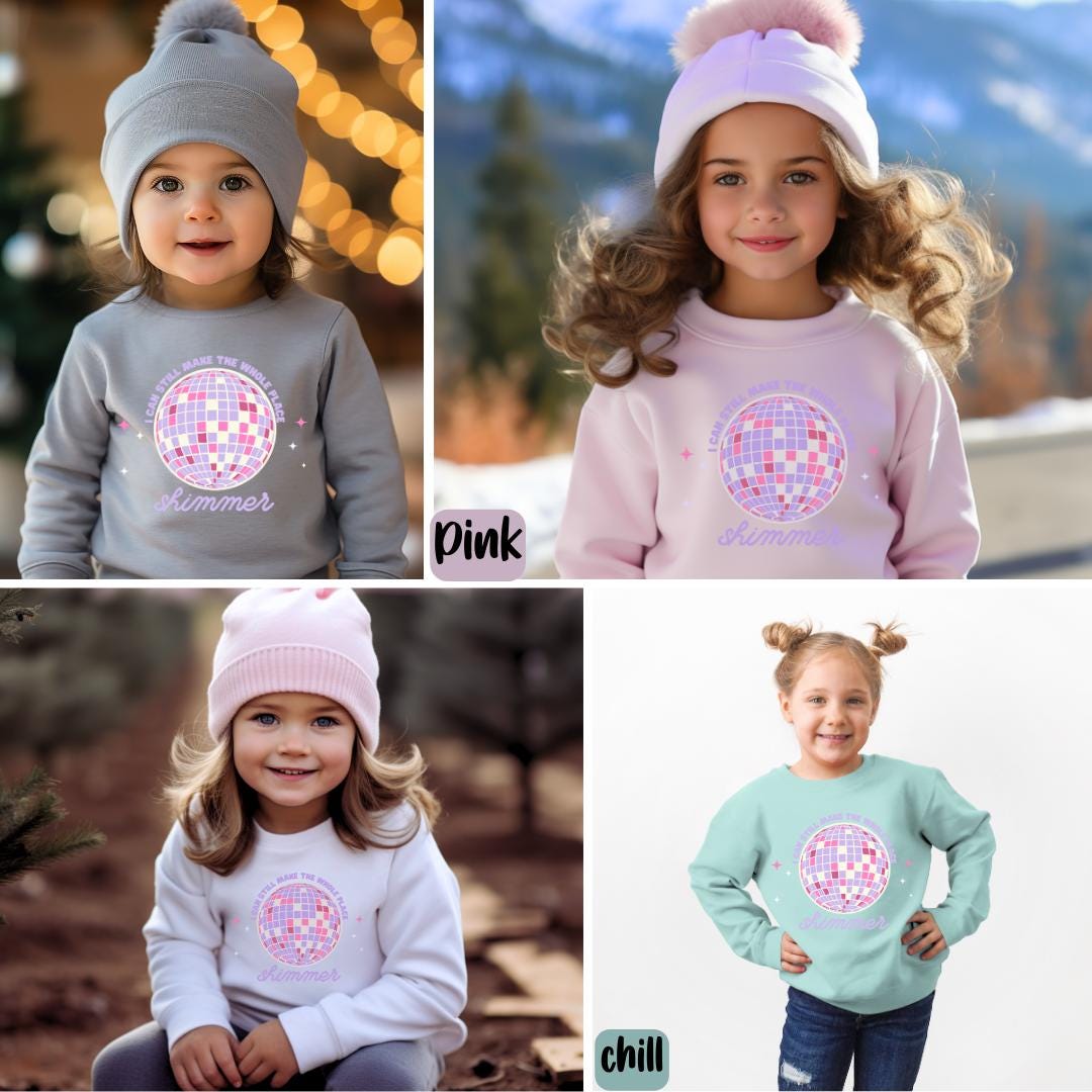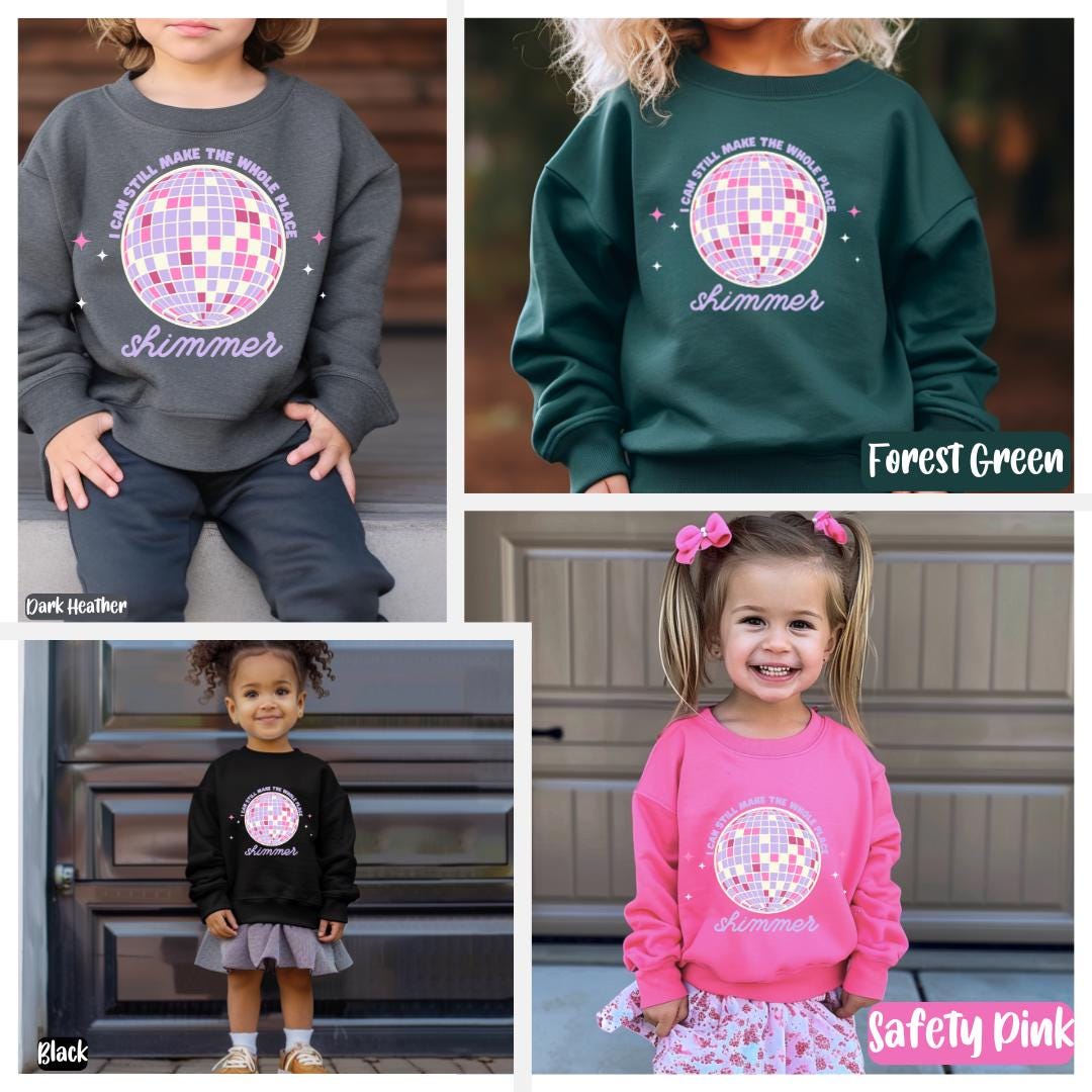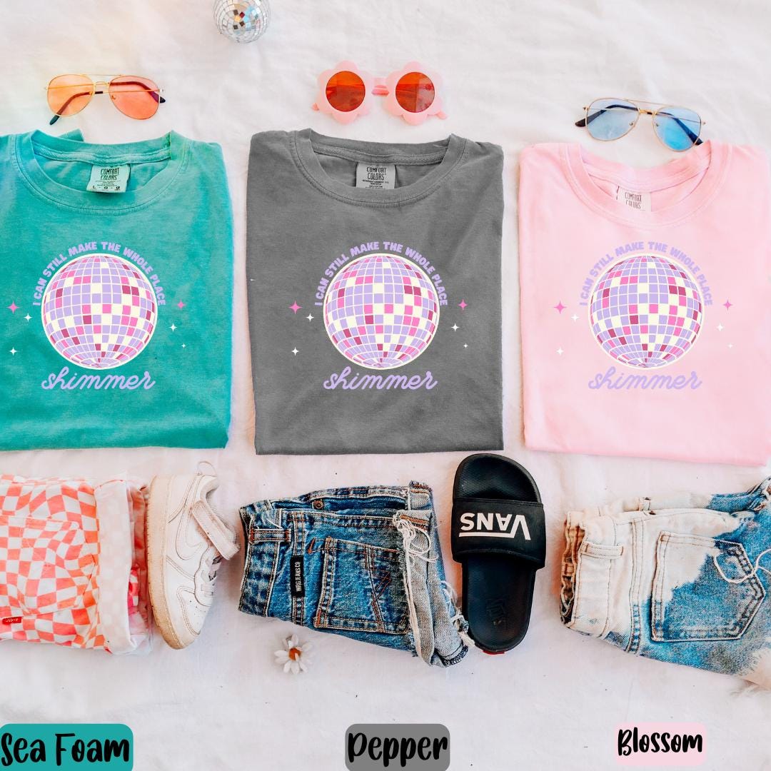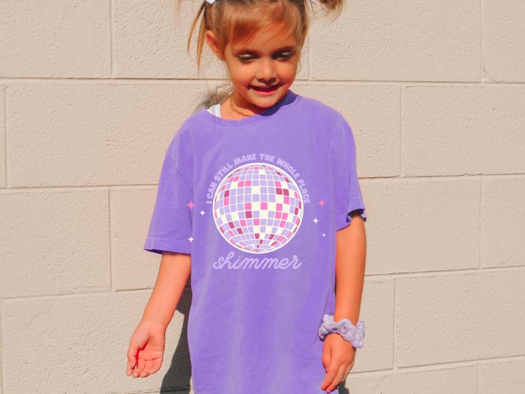 Introducing our I can Make the Whole World Shimmer T-shirt! A whimsical design that features a beautiful Disco ball front and center of the shirt with an adorable phrase that will make any music lover happy!