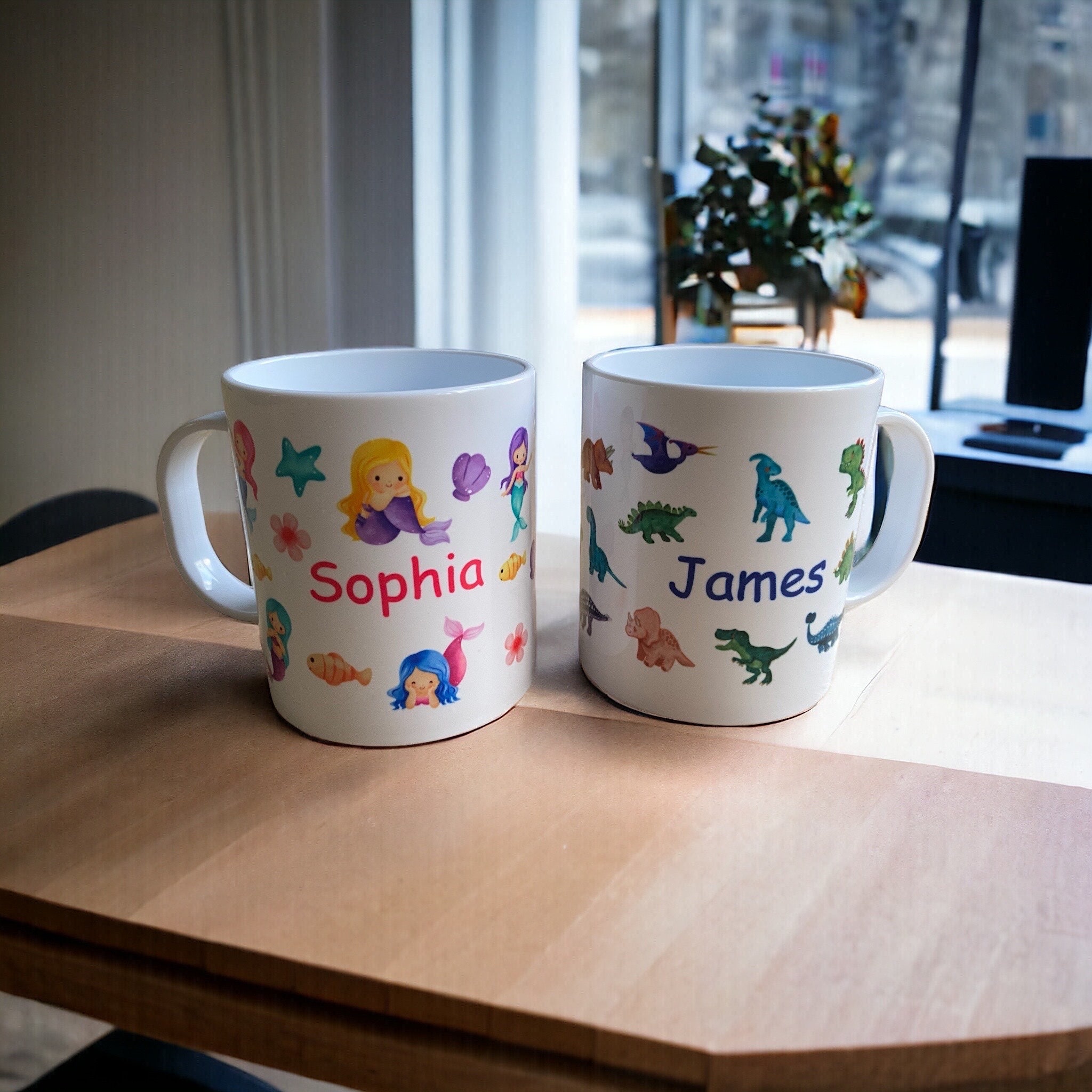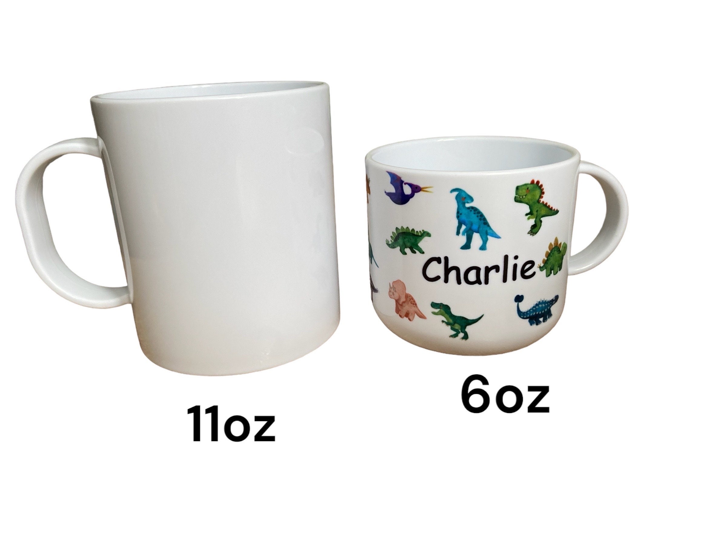 11oz white polymer mugs are now available. These come with the same design and can be personalised just like the 6oz mugs! these will be perfect for the bigger kids. (please note there will be a gap at the bottom and top of the design for the best pressing result)