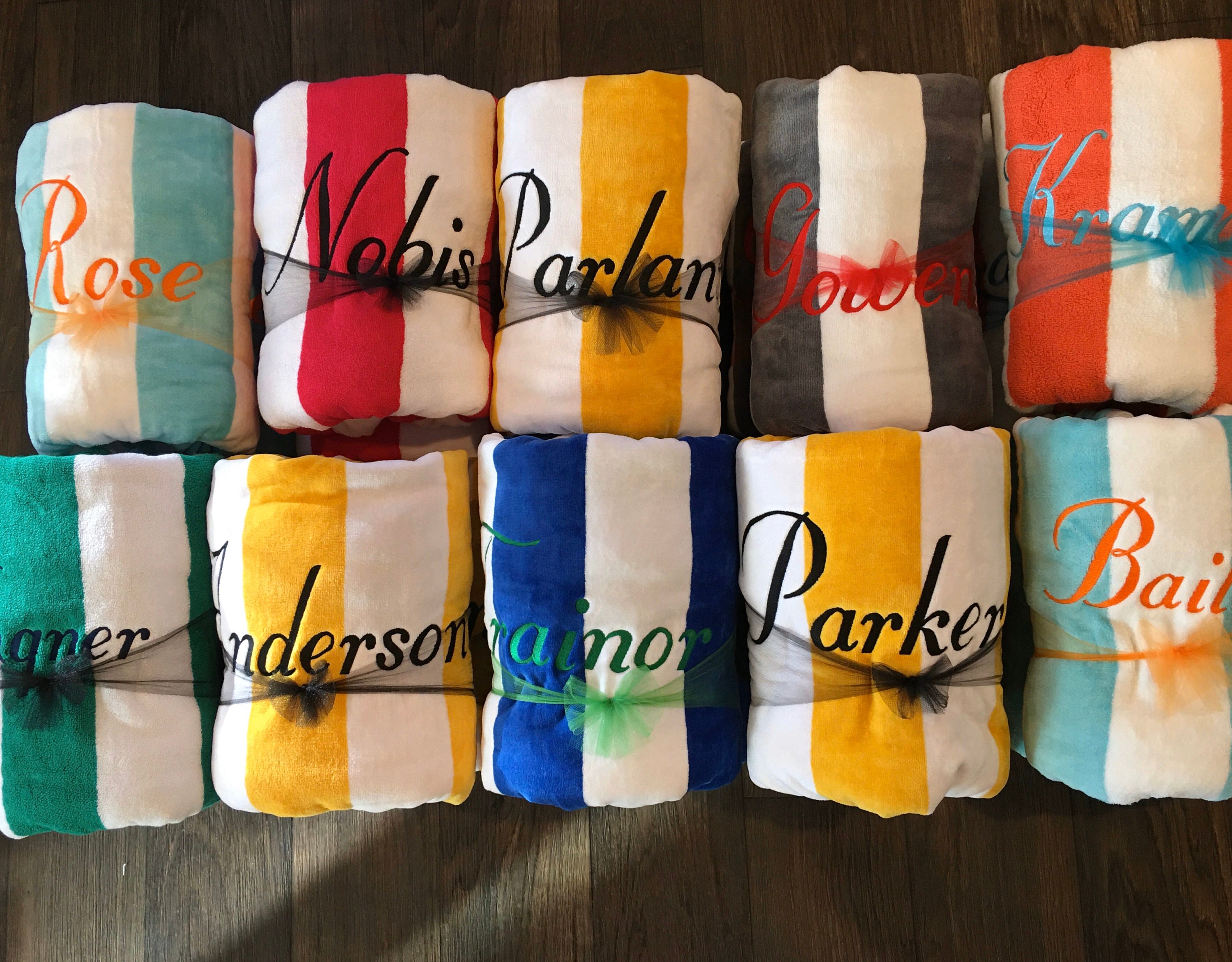 Can be customized with your last name, initials, or first name. Please arrange the initials in the order you would like them sewn (usually first name, last name, middle name).