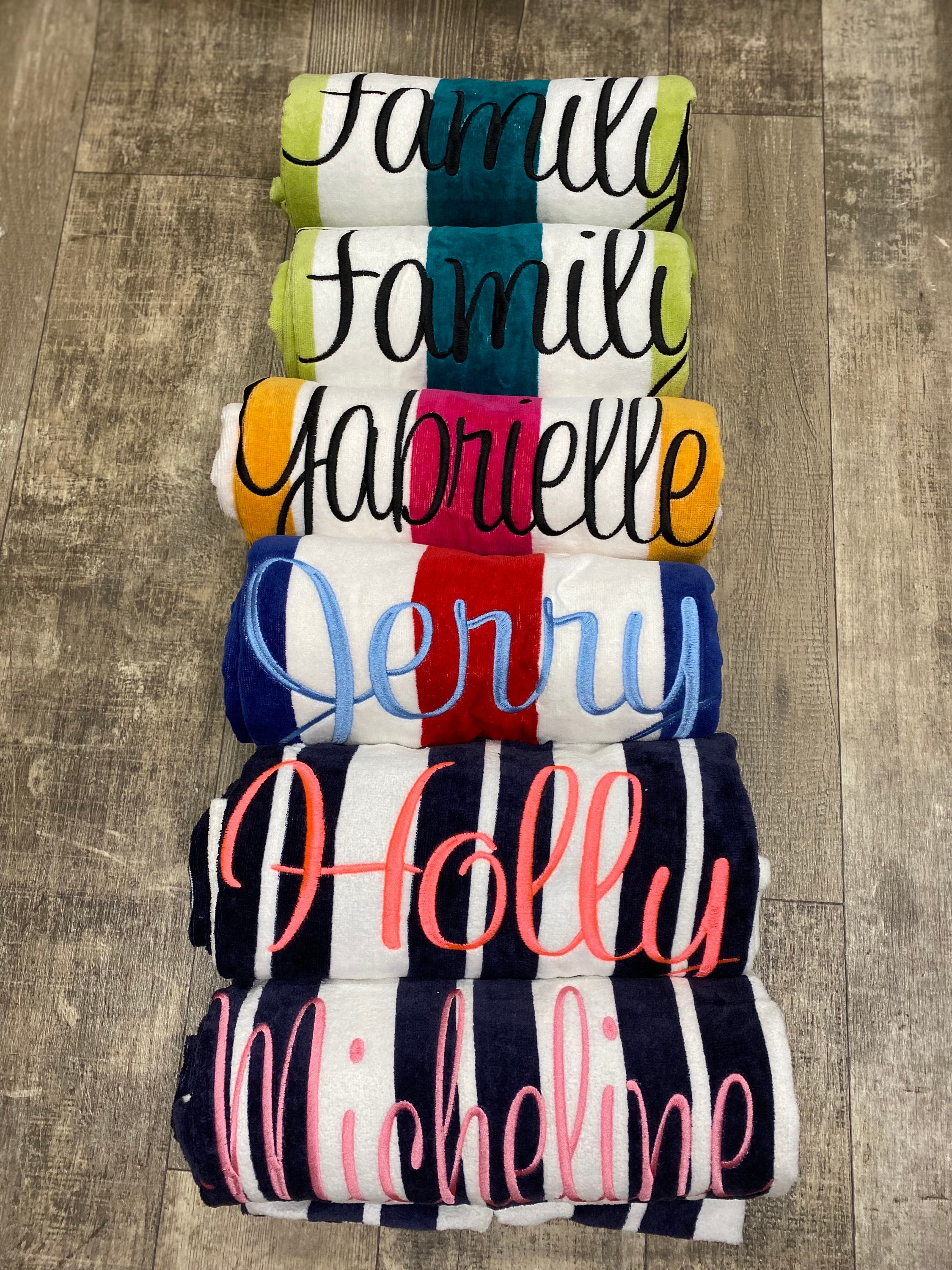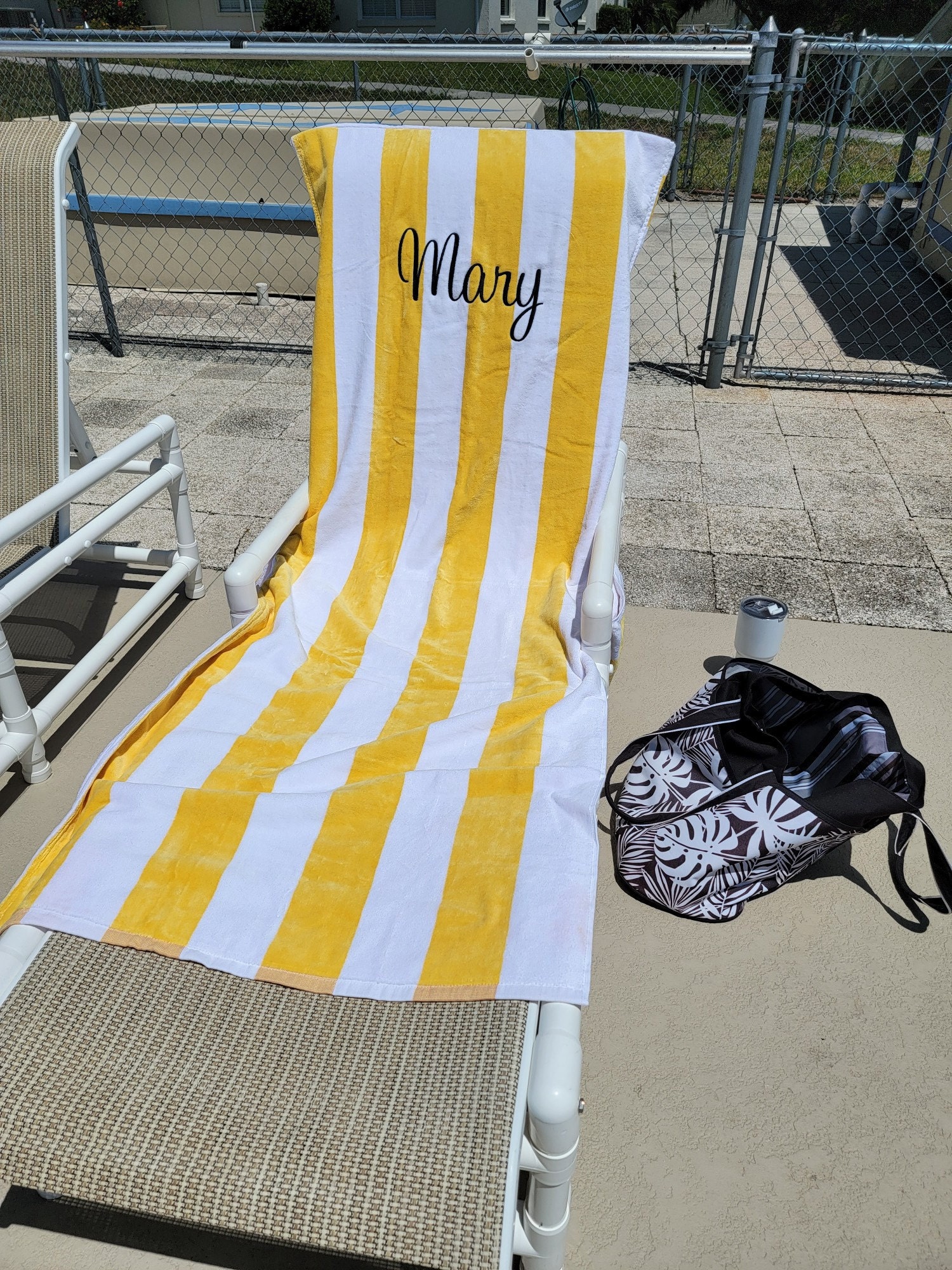 One of the most sought after items for summer!! These personalized lounge chair covers are perfect for when you reserve a lounge chair by the pool, on the beach, or at a water park. This listing includes 1 personalized lounge chair cover.